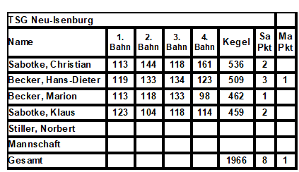 Die Ergebnisse der TSG Kegler*innen im Einzelnen: