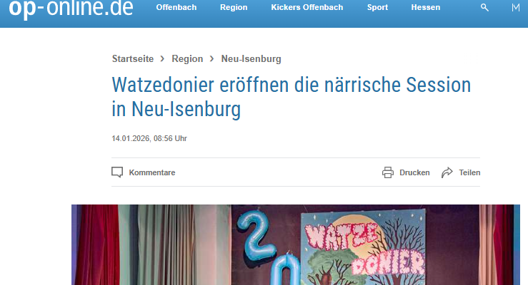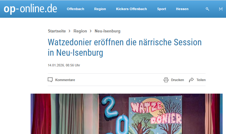 Unter dieser Überschrift berichtet die Offenbach Post über die 127. Sitzung der Watzedonier. Der lesenswerte Artikel kann online hier abgerufen werden. Das könnte Sie auch interessieren:127. Sitzung der Watzedonier